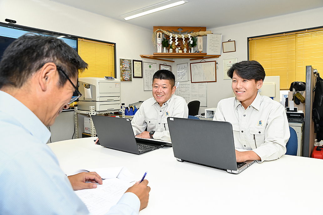 | | | 帰社後、その日に行った現場の作業報告や 成果(測量結果)を作成し、次の日の現場準備を行います。 |